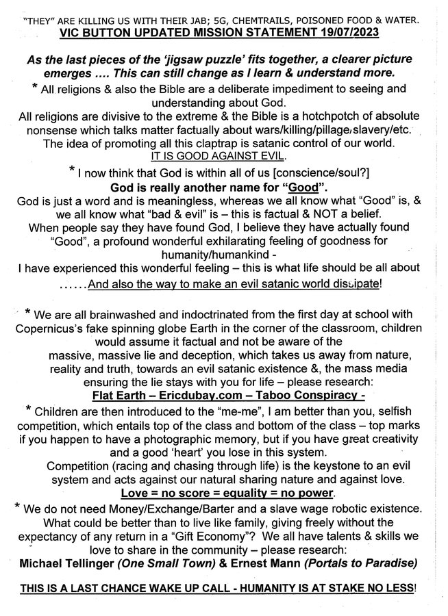 False Bible || False God || False Jesus || False Religions || The Fake Spinning Globe Earth || Fake Moon Landings || The Covid Hoax || Killer Vaccines || Deadly 5G || Polluting Chemtrails || HAARP Weather Manipulation || Fluoride Poison || Aspartame Poison, etc, etc, etc!!!
